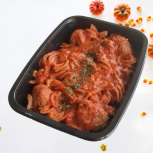MACARRÃO INTEGRAL, ALMONDEGAS DE CARNE E MOLHO DE TOMATE